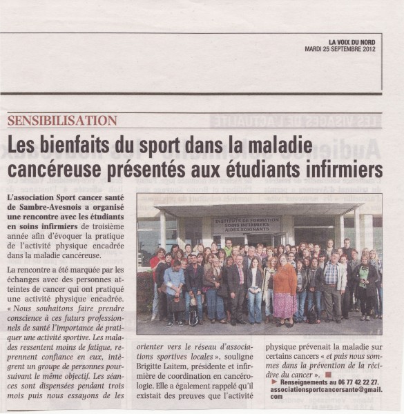 les témoignages sont importants. Ils font prendre conscience à nos futurs infirmiers de l'importance de l'activité physique adaptée face à la maladie et d'être des relais pour faire connaitre l'association dans leurs futurs postes.