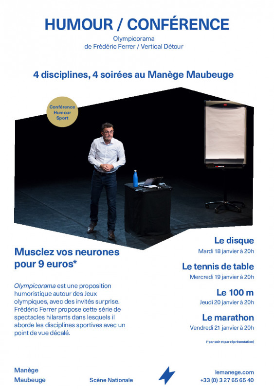 Cette série de conférences humoristiques de Frédéric Ferrer, mettant à l'honneur plusieurs épreuves olympiques, nous propose de découvrir ou redécouvrir ces disciplines sportives de façon hilarantes et insolites !