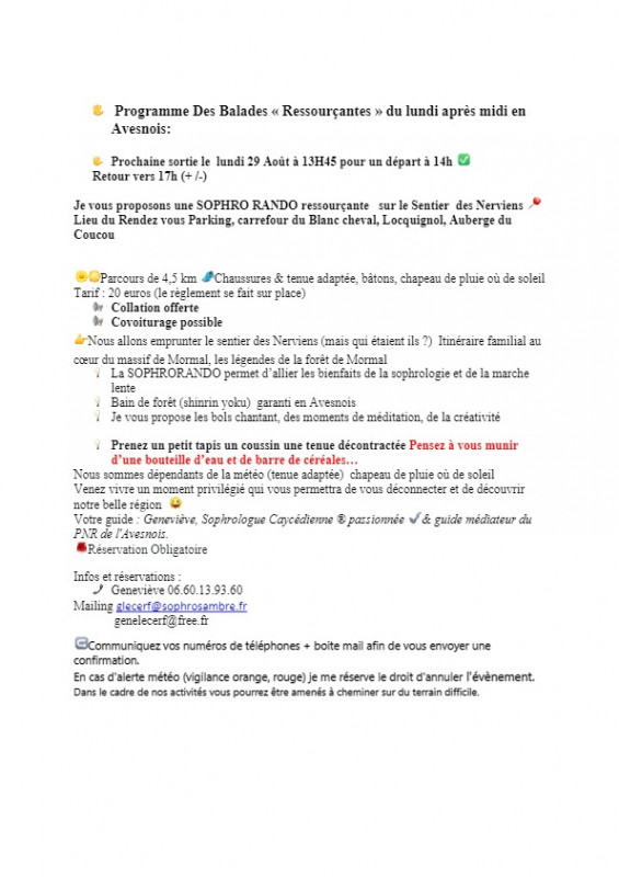 J’ai intégré l’association depuis 9 mois J’y ai rencontré des gens formidables investis Je continue de voir les personnes de la cession dernière nous marchons ensemble régulièrement et...